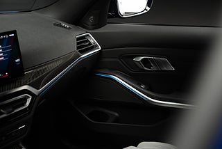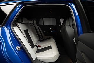 BMW M3 Competition Touring xDrive i snygg färgkombination. Portimaoblå metallic med inredning i Silverstone/Svart Merinoläder.