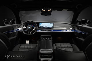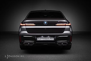 BMW M760e XDrive laddhybrid med fin spec. Lackerad i Individual Frozen Deep Grey metallic kombinerat med interiör i svart Individual läder.