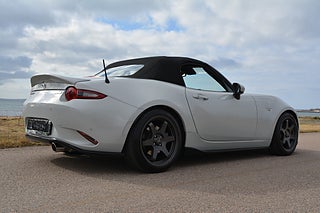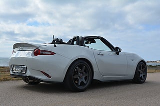 En mycket välbyggd och smakfullt modifierad Mazda MX-5 med fokus på körglädje och prestanda. Utrustad med den starkare 2.0 160 hk motor samt exklusiva komponenter som Öhlins coilovers, uppgraderat bromssystem från Wilwood och Brembo, samt sportavgassystem från Goodwin Racing. Bilen har även sportpaket med Recarostolar, aerodynamiska förbättringar och noggrant utvalda chassikomponenter för maximal väghållning. Mazda MX-5 Cabriolet är utformad för att skapa körglädje med hjälp av precision, balans och prestanda, för bästa körupplevelse. Med fantastiska egenskaper av chassi, säkerhet och tekniska funktioner tar Miata MX-5 den nedcabbade körglädjen till nästa nivå levererat i en läcker stil. I sann sportbilsanda har den bakhjulsdrift, i kombination med stora motorn på 160 hk och 6 växlad manuell låda. Miata har låga ägandekostnader i försäkring, service etc. Mazda MX-5 Cabriolet har kamkedja vilket innebär att dyra kamremsbyten uteblir.