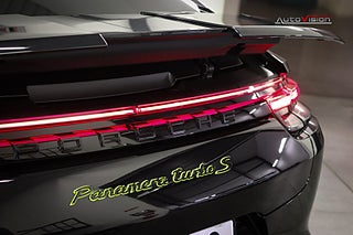 Utrustad med bla Kulör: Jet Black Metallic, Panorama glastak, Porsche Keramiska bromsar med Gula broms-ok (PCCB), Sportdesign paket i svart, Rattvärme, ISOFIX fram & bak, Elektrisk solskyddsgardin för bakruta, 21" Exclusive Design fälgar i svart, Sätes ventilation fram, Dekorinlägg i blanksvart, Porschevapen präglad i mittarmstöd, Soft Close dörrar, HUD - Head up dispplay, Instegslister i Kolfiber (Belysta), Varvräknartavla i kontrastfärg - Vit, Lane change assist, Park assist inkl Surround view (360 kamera), LED Matrix strålkastare i svart inkl PDLS Plus, PASM Luftfjädring, Sport Chrono, Bose ljudsystem, Tonade bakljus, Adaptiv Farthållare, 4 Zons Klimatanläggning, Modellogo lackerad, Instrumentering läderbeklädd, Sportavgassysten inkl ändrör i svart och mer därtill.