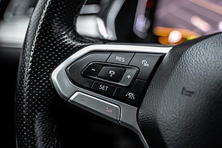 Exteriört sticker bilen ut med sin aggressiva Nardogrå lack och R-Line Edition-paketet, som förstärker den sportiga designen. Full LED-belysning med LED-huvudstrålkastare, LED-bakljus, dagljus med assistansljus samt Coming Home-funktion ger både stil och funktion. Sportutrustningen och de sportiga detaljerna gör att bilen ser lika snabb ut som den faktiskt är.