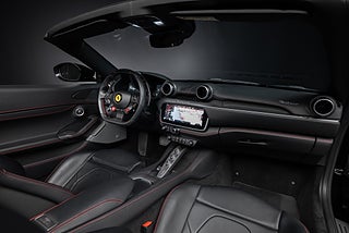 Ferrari Portofino lackerad i Nero Daytona metallic med läderinredning i Nero med Rosso kontrastsömmar. Biturbo V8:a på 600 Hk. 0-100km/h på 3.5 sekunder.