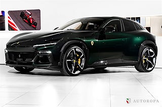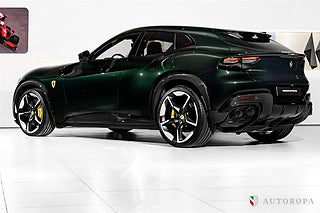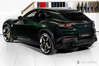 EXTRAUTRUSTNING:,Ferrari Purosangue -25, Verde Zeltweg special paint with Cioccolato interior, Fully specified as per standard spec on the Purosangue model, Additional options to this order, Giallo Modena brake calipers, Forged rims in diamond matt finish, Wheel arch in carbon fibre, Carbon fibre sill kicks, Carbon fibre side skirts, Carbon fibre diffuser, Black ceramic exhaust pipes, Italian flagg, Carbon fibre front spoiler, Privacy windows, Titanium wheel bolts, Scuderia Ferrari shields, Panoramic roof, Carbon fibre steering wheel, Embroidered log on rear wall, Horse stitched on headrests in Giallo, Aluminium footrest, Yellow rev counter, Contrast stitching in Giallo, Upper area in Nero leather, Mats with logo stitched, Full ppf, Ferrari new car warranty and possibility to add Ferrari Approved warranty, Part of 7 years free maintenance program, The car is on our showroom at Testvägen 18 Arlöv and ready for delivery, Please call or e-mail for more information.,