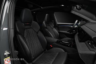 Audi Q6 e-tron Edition One. Lackerad i Magnetgrå med sportsäten plus i svart läder med rombmönster och kontrastsömmar i stålgrått.