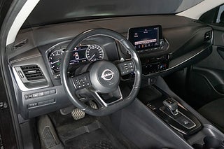 Nissan Qashqai 1.3 DIG-T Xtronic MHEV 158hk i färgen Svart med tvådelad tygklädsel i svart/grå samt ljusgrått innertak. Syntetisk läderratt samt läderklädd växelspaksknopp. Svensksåld med 1 brukare. Leasebar för företag. Första registrering 2022-09-22. Miljöklass Euro 6 med låga årsskatten på 1.020kr. Bränsleförbrukning 6.3/100km vid blandad körning enligt tillverkaren.