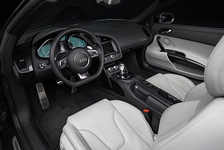 Multifunktionsratt i läder avplanad nertill. Instegslister i aluminium med R8 emblem. Farthållare. Färddator. Automatisk komfortklimatanläggning med solsensor. Stolsvärme. Låsbara förvaringsfack mellan stolarna. Automatiskt avbländningsbar innerbackspegel. Regnsensor. RDK Däcktrycksindikator. Värmeskyddande framruta. Röststyrning av stereo. Bakljus med LED-teknik. 12 V uttag i bagagerummet och i handskfacket. Audi hill hold assist. Bränsletank 90 l. Pedaler och fotstöd i aluminiumlook. Ytterbackspeglar elektriskt inställ-/infäll-/uppvärmbara. Stöldlarm. ISOFIX-barnstolsfäste för passagerarsäte fram. Växelspaksknopp i aluminium.