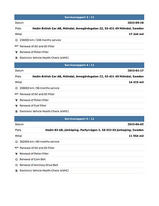 Servad och skött 1547 Mil / 3179 Mil / 4886 Mil / 6522 Mil / 7824 Mil / 10015 Mil / 11954 Mil / 14419 Mil / 17344 Mil / 21917 Mil / 25048 Mil.