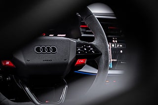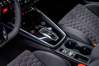 Praktiska funktioner som komfortnyckel och parkeringsassistent gör vardagen enklare, medan det röda RS designpaketet och kolfibermotorkåpan visar på bilens unika karaktär. Den snabba och precisa S tronic automatväxellådan kompletterar den redan imponerande teknikpaketeringen.