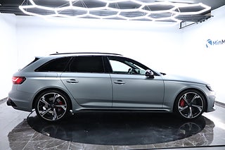 Upplev prestanda och stil med denna Audi RS 4 Avant från modellår 2020. Under huven sitter en kraftfull 2.9 TFSI V6 quattro bensinmotor som levererar hela 450 hästkrafter. Denna kombi är lackerad i en elegant svart färg och är utrustad med Audi connect samt Matrix-belysning. Exteriören förstärks ytterligare med Black Apperance Plus-paketet, vilket ger bilen en distinkt och sportig framtoning.