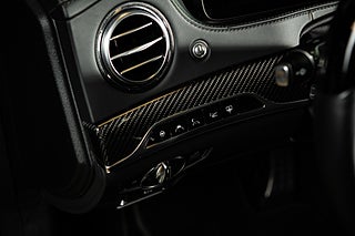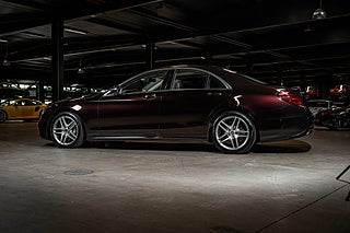 Denna generationen W222 följde ledet av sina föregångare och är ett tekniskt underverk och fortfarande ett av de absolut främsta sätten att färdas långt i komfort. Detta exemplar är specificerat i en synnerligen ovanlig nyans av svart som Mercedes själva benämner Ruby Black. Färgen framstår i visst ljus nästan som mörkröd metallic. Det är en bil som gör skäl för uttrycket 'understated luxury' bättre än någon annan. För gemene man så är det bara en Mercedes sedan men även för denne så är det ett fordon med en fantastik närvaro. Den svart röda exteriören kompletteras av ett AMG-line paket som här ger bilen en nya fascia och en annorlunda sidokjol tillsammans med en uppsättning 19" AMG fälgar i dubbel-eker design. Den underbara exteriöra färgen får även en fin kontrast från detaljer i aluminium.