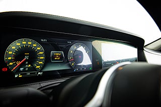 Men det är insidan som så på så många S-klasser är den stora höjdpunkten. Du välkomnas till en svart helläder interiör i exclusive design och det blir snabbt tydligt att du nu sitter i en av motorindustrins absolut främsta interiörer. Det svarta lädret genomsyras av detaljer och reglage i aluminium. Allt känns genomtänkt och alla materialval är i världsklass. Förarmiljön är helt digital med två skärmar som dominerar instrumentbrädan. Bilen är rikligt utrustad med bekvämlighets funktioner för både färd och komfort. Så som paket för ställbara baksäten och skärmar i för infotainment. Ovan har man panoramataket som är inramat av ett innertak i alcantara. Utrustningslistan kan som sagt göras lång.