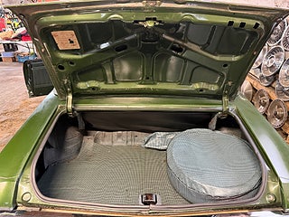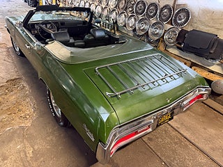 Här erbjuds du ett rullande tidsdokument. Den kom hit från soliga Florida som 10-åring varvid den garageförvarades till 2002 då den den ställdes på. Den har därefter rullat sparsamt, varav den senaste ägde den 15 år. Den är helt fri från rost, lagningar eller bättringar. Fabrikslacken i Verdemist Green metallic har en del solpatina (oxid) på vertikala ytor men ger ett gott helhetsintryck. Krom, inredning och cab är i mycket fint skick och det ser originalmässigt bra ut i motor- och bagagerum samt undertill. Hos oss har den begåvats med nya gummilister samt nya fälgar och däck... fetare bak för sportig stance, såklart. En cool detalj är optional Luggage Rack på bagageluckan. Den är riktigt pigg och trevlig att köra med bra kraft i den 260 hästar starka 4V 350:an och 350-lådan växlar smutt. Givetvis är den besiktnings- och skattebefriad. Bättre bilder kommer vid bättre väder, men vänta inte på det... ring mig direkt och boka en visning!..