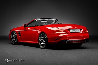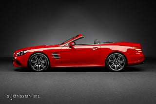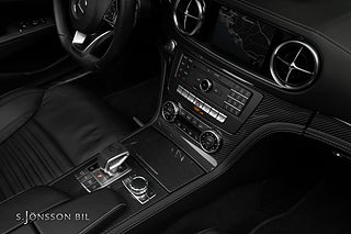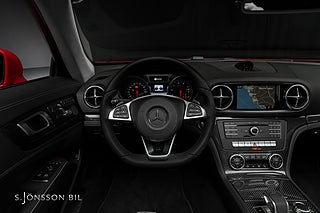 Mercedes-Benz SL 500 med AMG-paket, utökat exklusivläder och interiörpaneler i kolfiber.
