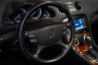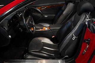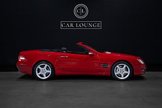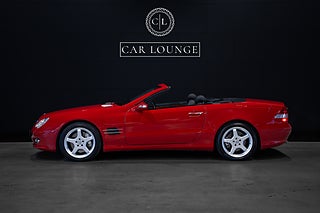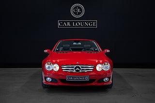 Otroligt välvårdad Eldopalröd Mercedes-Benz SL 500 facelift. År 2006 kom en facelift på modellen som presenterades 2001 modellkod R230. En rad uppdateringar och förbättringar infördes på modellen. V8:a motorn blev på 5.5 liter, istället för 5.0 liter. Detta resulterade i 388 hästkrafter och 530 nm, Inredningen och instrumentering blev rejält uppdaterad med högre kvalitet och bättre kvalitetskänsla.