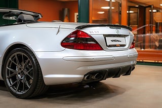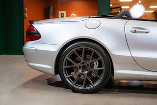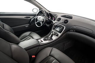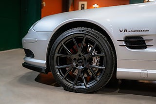 Mercedes SL55 AMG av årsmodell 2002 (R230) lackerad i Brilliant Silver Metallic med antracitfärgad "Exclusive"-skinninredning.