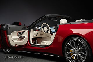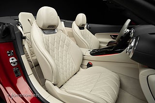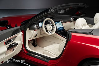 Mercedes-AMG SL 63 i vacker färgkombination. Lackerad i Manufaktur-färgen Patagonienröd bright, med Manufaktur-inredning i Macchiatobeige och Svart nappaläder.