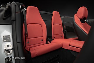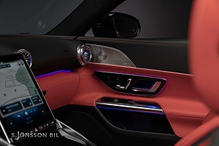 - Utökat läder på instrumentpanel och dörrsidor med kontrastsömmar i Red Pepper