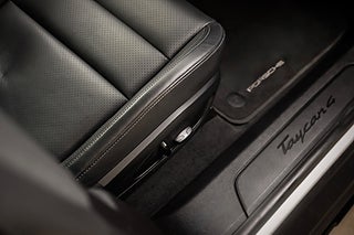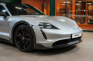 Mycket fint utrustad Porsche Taycan 4 Cross Turismo av årsmodell 2022. Lackerad i snygga Dolomite Silver Metallic med svart helläderinredning som ger interiören ett ordentligt lyft. Fullservad på Porsche Center och klädd med PPF på hela frontpartiet samt backspeglarna. De svarta accenterna "poppar" verkligen mot den ljusa lacken och gör den här Taycanen lite extra trevlig att vila ögonen på. Lägg därtill backspeglar i kolfiber, Rear Axel Steer och Matrix-lampor i Glacier Blue så har du en mycket påkostad och elegant Taycan.
