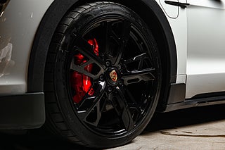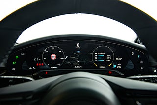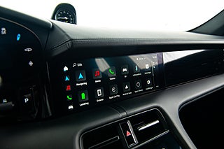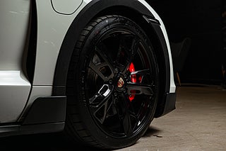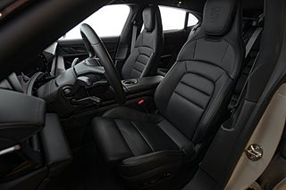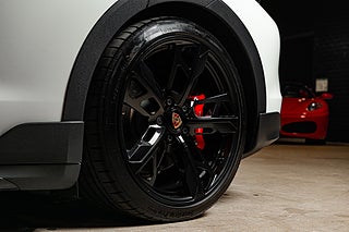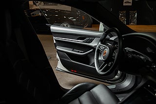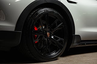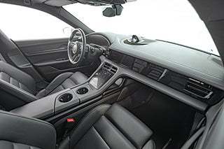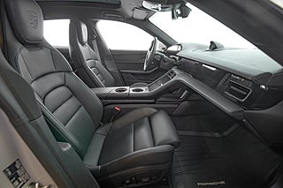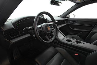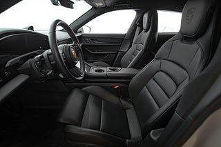 Få elbilar är så vackra och så funktionella som Porsches Taycan. En elegant,enkel profil som tack vare paketeringen som bara en elbil kan ha ger en helt unik siluett så väl som en luftig interiör. Detta exemplar i eleganta Crayon. En solid kulör som här får en fin kontrast av 21" fälgar i CrossTurismo design som ger utsidan en proper och stilig personlighet med en underton av attityd. Öppna förardörren och man blir påmind om att detta är Porsches vision om framtiden. De 5 mätartavlorna vi har blivit vana vad i en 911 har blivit en stor avlång display med all information som kan önskas av föraren. Genomgående läderklädsel i i svart och ovanför dig,ett stort panoramatak. Underhållning sköts via ljudsystem från BOSE är en självklarhet men här inne finner man andra bekvämligheter som gör varje färd till ett nöje. Heads-up display och sportstolar med präglade Porsche vapen som ger passagerarna mer stöd och support från stolarna.