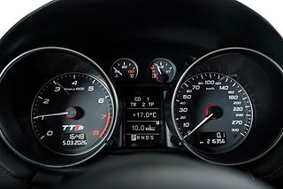 Svensksåld Audi TTS av årsmodell 2009 lackerad i Brilliant Red med inredning i svart/Magmarött Nappaskinn.