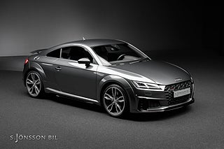 Audi TTS Coupé i snygga kulören Daytona grå metallic. Interiören är i läder och alcantara med grå kontrastsömmar. TTS har 306 hk och Quattro fyrhjulsdrift och klarar 0-100km/h på 4.5 sekunder.