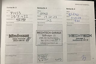 Fordonets historik - 15 händelser finns registrerade