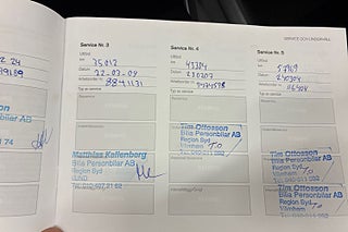 Fordonets historik - 15 händelser finns registrerade