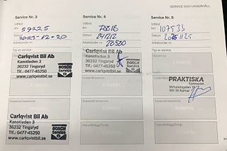 Fordonets historik - 12 händelser finns registrerade
