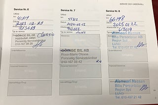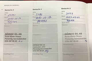 Fordonets historik - 15 händelser finns registrerade
