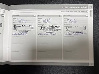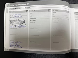-Senast servad: Servad 2025-11-12 med kupefilter, olja & filter.