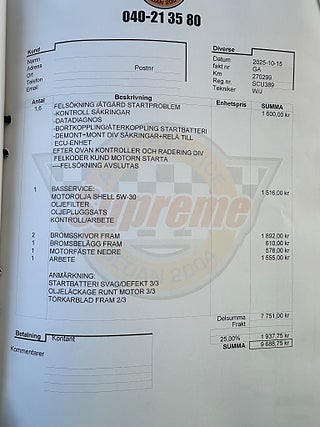 Fordonets historik - 34 händelser finns registrerade