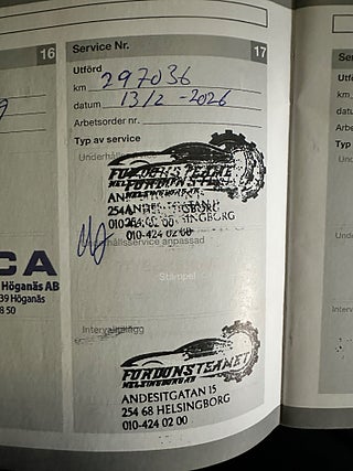 Fordonets historik - 28 händelser finns registrerade