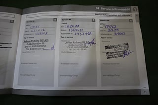 Fordonets historik - 16 händelser finns registrerade