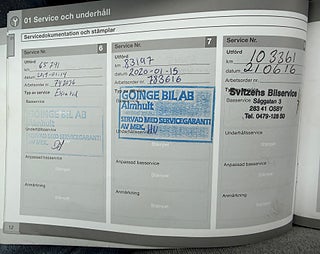 Fordonets historik - 23 händelser finns registrerade