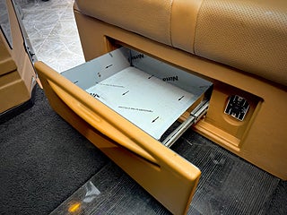 Ett diskret och effektivt kylskåp som håller drycker och snacks välkylda och lättillgängliga för alla passagerare.