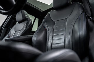 Invändigt möts du av en genomtänkt och exklusiv miljö. Sportstolar med elektrisk justering och minne, M läderratt, aluminum finskurna interiörlister och ambient kupébelysning skapar en premiumkänsla som känns i varje detalj. Det stora panoramataket och akustik komfortglas bidrar till ett ljust, tyst och behagligt kupéklimat, medan klimatautomatik och Ambient Air-paketet höjer komforten ytterligare.