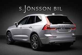 Volvo XC60 B4 AWD Inscription lackerad i den populära Bright silver metallic med Maroon Brown läderinteriör.