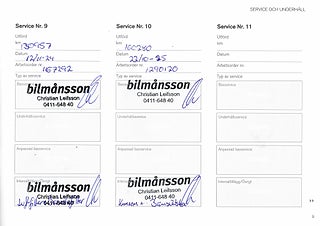 Fordonets historik - 13 händelser finns registrerade