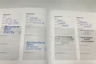 Fordonets historik - 11 händelser finns registrerade