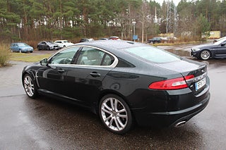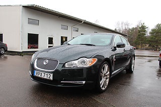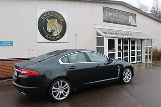 En mycket trevlig Jaguar XF med den underbara 5-liters V-åttan på 385 hk. Just denna bil har en härlig grön färg, parat ihop med ljus skinninredning och valnötsfaner.