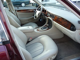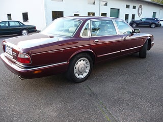 Kan man åka skönare än så här? X308 Daimler med den "vanliga" v-åttan på fyra liter och 16 tumsfälgar går magiskt mjukt och tyst på vägen! Valnötsborden och ullmattorna ger den där extra premiumkänslan!