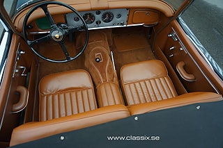 En otroligt vacker Jaguar XK150 OTS från 1957 i svart med brunt skinn. Just det här exemplaret är en av de bästa vi har kört! Utrustad med exklusiva Turrino ekerfälgar och däck med bred vit sida. Om man skulle föredra India fälgar kan vi byta dem och man kan även få andra däck. Bilen har blivit omhändertagen av Jaguar XK specialisten Twyfords i U.K och den har några fina uppgraderingar i koppling, låda och motor. Den här bilen får många betydligt dyrare bilar att se alldagliga ut, och det är utan tvekan en av dem som får mest uppmärksamhet i vårt showroom. Och den är nu väldigt användbar för sin ålder. Vi byter gärna med andra entusiast fordon. Hör av dig när du vill komma så öppnar vi upp. Mätarställning avläst.