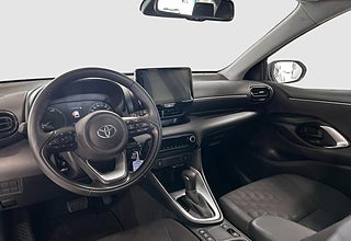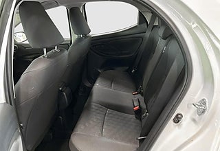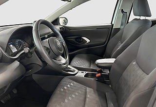 Bilens ecall -och appfunktioner kan påverkas av nedstängningen av 2G och 3G-näten, vilket för 2G-nätet sker i december 2025 och fram till och med 2027 och stängning av 3G-nätet har påbörjats och stängs successivt., Ratt med styrningskontroll för informationsdisplayen,Knapp för strömbrytare på mittkonsolen,Fönsterhissar med automatisk upp/ner-funktion,Varningssystem för lågt däcktryck (TPWS),Fönsterhissar passagerarplatser låsbara,Strålkastare med \"Follow-me-home\"-funktion,Bromsljus som blinkar vid kraftig inbromsning för att varna bakomvarande fordon (EBS),Automatiskt avbländande helljus (AHB) av/på-knapp,Reservhjulet ersatt av reparationskit,Aktivt krockskyddssystem med korsningsassistans för bilar,Ratt med styrningskontroll för audio,Krockkuddar förare och passagerare mitt,Acceleration suppression at low speed,Baksätets ryggstöd delbart och fällbart 60/40-delning,Aktivt krockskyddssystem med väjningsassistans (detektion av fotgängare cyklister och stillastående fordon),Aktivt krockskyddssystem (PCS) med fotgängar- och cyklistdetektion,Bakruta Vindrutetorkare med variabel intervallfunktion,Passagerarkrockkudden fram urkopplingsbar,Toyota Smart Connect+ multimediasystem med Smartphone Integration Apple CarPlay (trådlös) och Android Auto (kabel) och inbyggd navigation,Driver Attention Alert uppmärksammar föraren att ta en paus,Ratt med styrningskontroll för körfilsvarning (LDA),Fönsterhissar elmanövrerade med klämskydd,Golvmattor i tyg (förare & passagerare fram),Krockkuddar förare och passagerare sidan,Fälgar 15\" lättmetall silver (5-dubbelekrade),Förarsäte manuellt justerbart i höjdled,Ratt med styrningskontroll för adaptiva farthållaren,Ratt med styrningskontroll för röstigenkänning,Låsningsfria bromsar (ABS) med elektronisk bromskraftsfördelning (EBD),Ratt med kontrollknapp för hastighetsbegränsning,Backkameradisplay med statiska hjälplinjer,Solskydd passagerare fram med spegel,Backspegel inre automatiskt avbländande,Lås Lås Upp - MyToyota-app (Betald Prenumeration),Vindrutetorkare med variabel intervallfunktion,Krockkuddar förare och passagerare fram,Emergency Driving Stop System (EDSS)