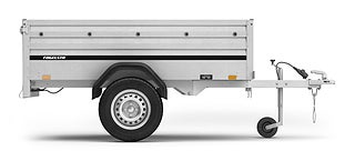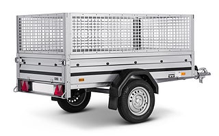 Liten och smidig fritidsvagn för t.ex. trädgårdsavfall, grovsopor och semesterutrustning. Fungerar även perfekt som vagn efter din trädgårdsmaskin, åkgräsklippare eller fyrhjuling. Kan enkelt förvaras uppställd mot vägg eller staket. Vagnen på bilden kan vara extrautrustad., Kampanj: 15900:- ord pris 17180:-, Lövhäckar 50cm. Total höjd på sida inkl lövhäck 105cm