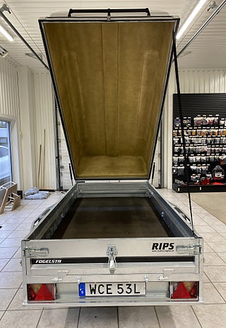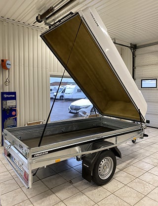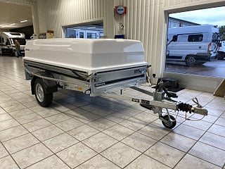 Vi har fått in två fina demo/visningssläp med 50cm glasfiberkåpa till kampanjpriser., Stabil allroundvagn för proffs. Extrautrustad modell med kraftigare svetsat chassi, gjuten kulkoppling och kraftigare axel med större broms. Svetsad fram och bakläm, extra skydd i form av avbärare på sidorna. Vagnen på bilden kan vara extrautrustad., Ord Pris: 52841:- inkl moms., Kampanjpris: 34900:- inkl moms, Finansieringsförslag: 1499:-/mån 24mån räntefritt