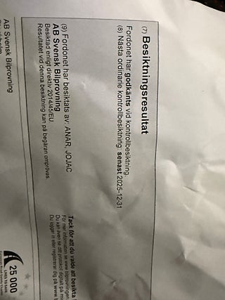 Fordonets historik - 9 händelser finns registrerade