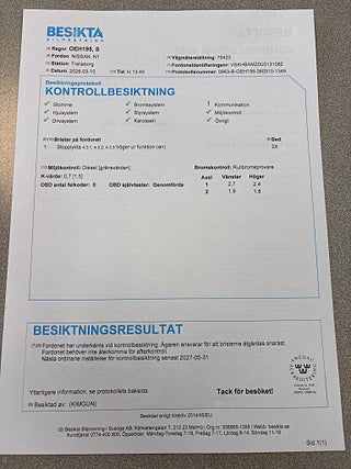 Besiktigad till 2027-05-31, Vi erbjuder finansiering via Santander och MyMoney, Vid intresse vänligen ring 0729-760693, Visning efter tidsbokning, Välkommen på visning mvh Jimmy Persson, Sydbil Öresund AB på Hedvägen 155 i Trelleborg