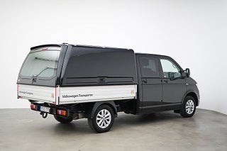 Nyinkommen Volkswagen Transporter Pickup med rymlig Vindic-Kåpa, 2.0 liters Diesel kombinerat med 4Motion / Fyrhjulsdrift och en manuell 6-växlad låda, AWD, Förbrukning: 0.72 l/mil enligt tillverkaren, Fordonskatt: 5117 kr/år, Dragvikt: 2.500kg, Lastmått: 2200x1900mm.