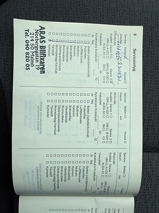 Fordonets historik - 21 händelser finns registrerade