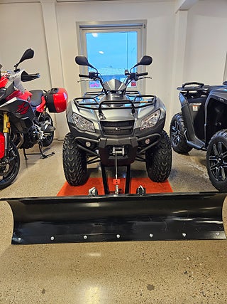 Den har en vätskekyld 4-taktsmotor på 443 cc med insprutning som ger bra kraft, samt automatisk växellåda med hög, låg, neutral och back vilket gör den mycket lättkörd. Fyrhjulsdrift med diffspärr gör att du tar dig fram i all terräng, året runt. Den stabila fjädringen och de hydrauliska skivbromsarna ger trygg och bekväm körning även på ojämnt underlag.